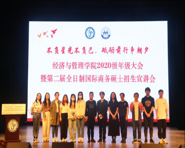 5月26日,我院2020级年级大会暨第二届全日制国际商务硕士招生宣讲会在学生活动中心二楼报告厅举行。学院党委书记姚莉、院长卓武扬、党委副书记杨聪聪、张江高校派出所警官唐海荣、2020级辅导员、2019级优秀学生代表以及2020级全体学生共同参加了大会。