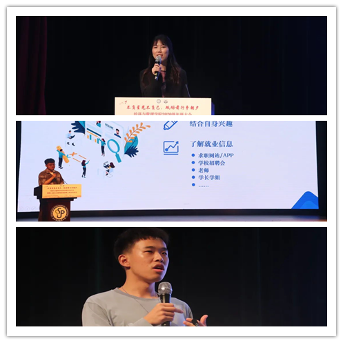 2019级优秀学生代表陈芮洁、徐玮韬、金晟昊分别就考研备考、求职就业、出国准备三个职业规划方向进行了经验分享。与会同学纷纷表示收获颇丰,受益匪浅。