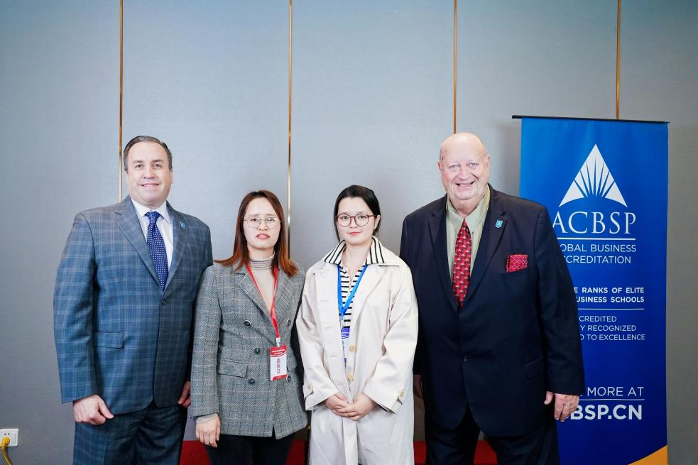 在论坛前的院校与ACBSP机构代表的交流中,潘海兰就新商科专业建设和国际化发展做了深入的分享,她强调了教育、科技、人才对国家现代化发展的支撑作用,并表示新商科建设与国际化发展是未来的重要趋势,同时与与会各高校共同探讨我校在ACBSP国际认证开展三年中的经验与问题。