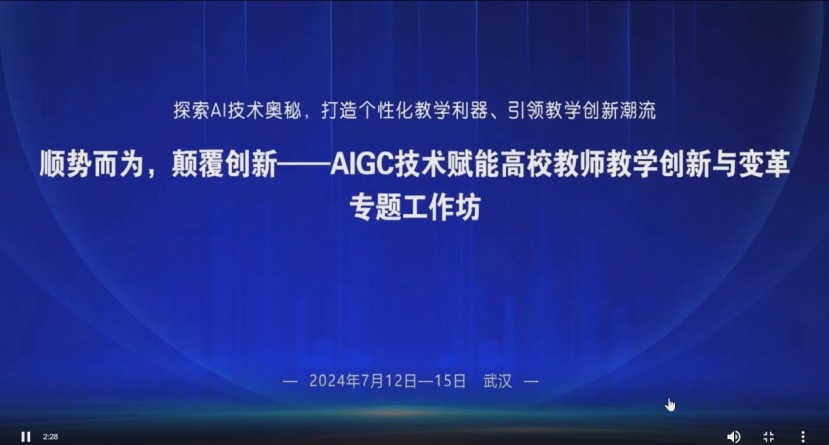 为积极响应教育创新的时代号召,加强教师队伍建设,提升教师在新兴技术背景下的教学能力,bw·西汉姆联教发分中心积极组织本院教师参加了由外部机构举办的“顺势而为,颠覆创新——AIGC技术赋能高校教师教学创新与变革专题工作坊”。此次线上培训于2024年7月12日至15日成功举办,学院共计52名教师参加,为我院教师提供了一次宝贵的学习与交流机会。