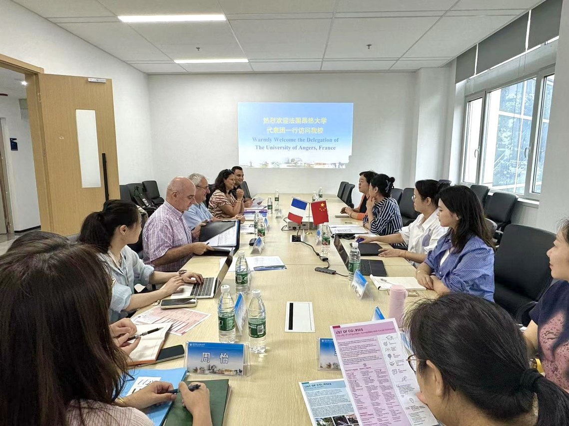 9 月 24 日,法国昂热大学理工学院院长 Patrice Mangeard、理工学院副院长兼国际关系办公室主任 KarimaThomas 等一行来访我院。我院党委书记乔立清、副院长潘海兰等在学院会议室热情接待了代表团一行。