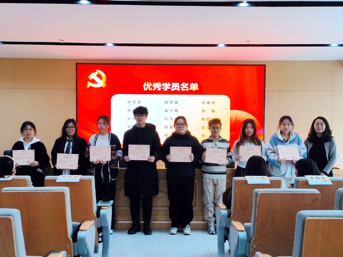 汇报展示结束后,进入颁发优秀学员、最佳实践小组证书环节。在本期培训班中,15名学员凭借在理论学习、实践活动、团队协作等多方面的出色表现脱颖而出,荣获“优秀学员”称号,杨聪聪老师为获奖学员颁发证书。同时,四支部1组在实践项目中展现出高度创新性、实效性以及团队协作精神的小组被授予“最佳实践小组”荣誉,李利平老师为获奖小组颁发证书。证书的颁发不仅是对他们过往努力的肯定与表彰,更是激励全体入党积极分子在未来继续砥砺前行,以更高标准要求自己,发挥先锋模范作用。