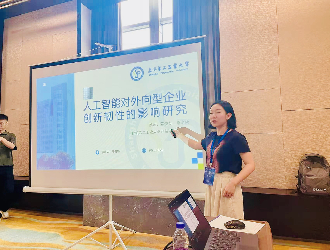 我院青年教师李奇璘和郑国姣,代表国际商务专硕教学科研团队参加了此次论坛。国际商务专硕方向负责人姚莉和李奇璘老师带领团队的科研成果,成功被论坛录用,并在分论坛上进行学术汇报展示。团队成果围绕人工智能在经济与管理领域的应用展开研究,分别从《人工智能对外向型产业创新韧性影响》和《新质生产力对企业出口韧性影响》两个角度,探讨了人工智能驱动下科技创新和产业创新的关键理论与现实问题,丰富了智能时代创新范式转型的视角和思路。