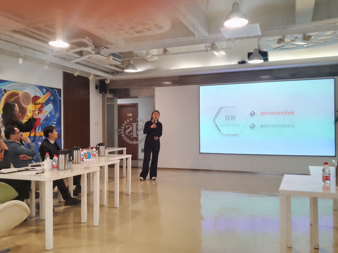 上海市质量和标准化研究院公共管理研究中心主任马娜围绕“国家标准体系改革动态交流”进行了主题分享。她梳理了国家标准化体系改革的历史背景,分析了当前存在的结构性与机制性问题,并对未来改革趋势进行了前瞻性研判。马娜指出,标准化体系正从政府主导向政府与市场并重转变,团体标准、企业标准活力有待进一步释放,标准化治理现代化是未来改革的重要方向。