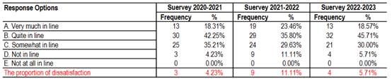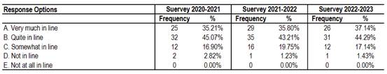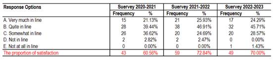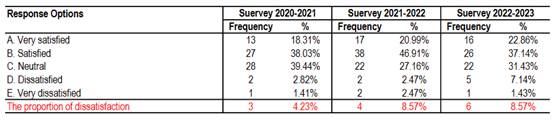 Faculty Satisfaction Survey in 2020-2021,2021-2022, 2022-2023