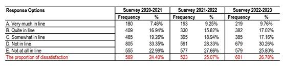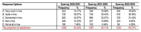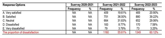 Student Satisfaction Survey in 2020-2021,2021-2022, 2022-2023