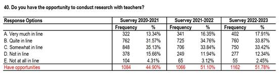 ² Doyou have the opportunity to conduct research with teachers?